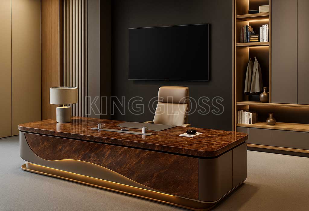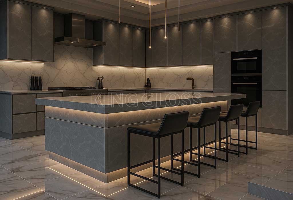با دامنه رنگی کینگگلاس، زیبایی را دوباره تعریف کنید؛ از رنگهای ساده و کلاسیک تا طرحهای چوب، سنگ و کهکشانی، همگی با روکشهای مات پلاس، براق و اکلیلی، انتخابی بیهمتا برای خلق فضایی مدرن و چشمگیر در دکوراسیون داخلی.
